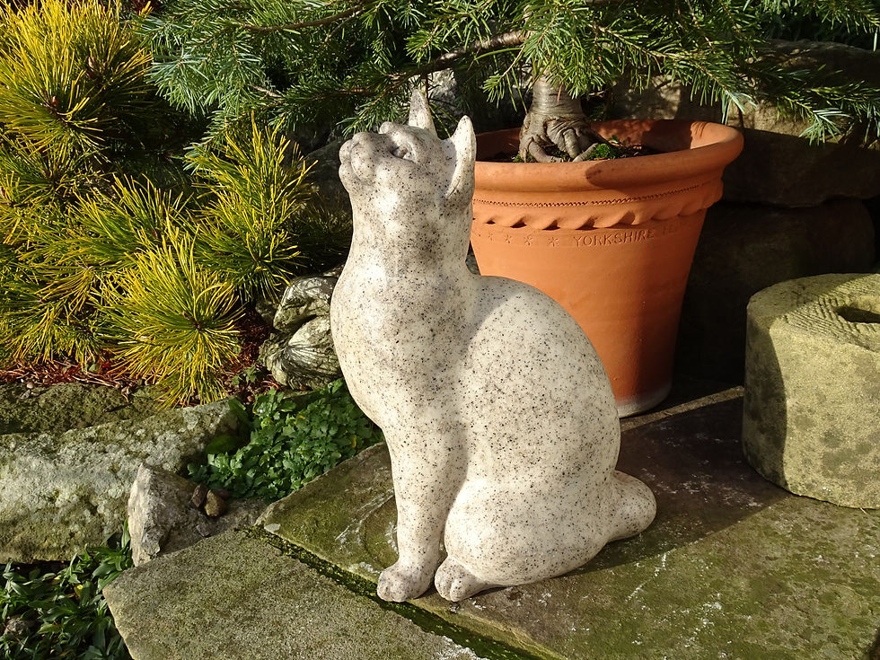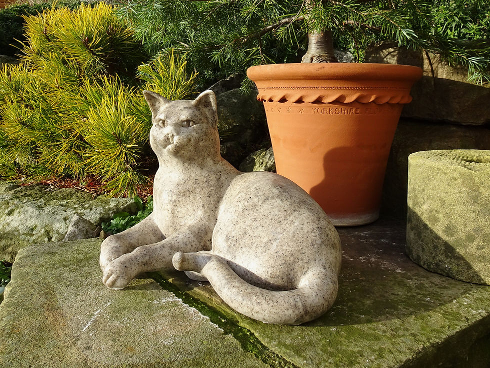 Large and lifelike our Garden Cats, cast in solid resin with either a grey aluminium metallic or unpolished stone finish