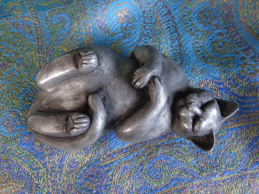 Large and lifelike our Garden Cats, cast in solid resin with a grey aluminium metallic finish